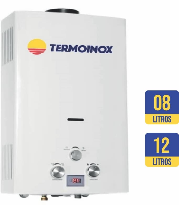 Calentador de agua instantáneo de gas con tipo de escape de humos, tipo natural. Panel de pintura blanca e indicador LED, con sensor de protección de agua sobre calor (85 °C), con sistema ODS, con interruptor encendido/apagado. Protección contra alta presión, protección contra quemaduras en seco, protección contra falla de llama. Disponible en 8L y 12L